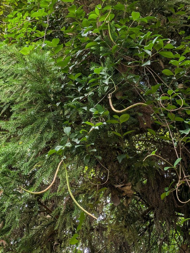 高木の上からぶら下がってるのをたった一度見ましたがテイカカズラが生い茂ってるところはあるのですが見たことがありません。近くで見たい物の1つです。