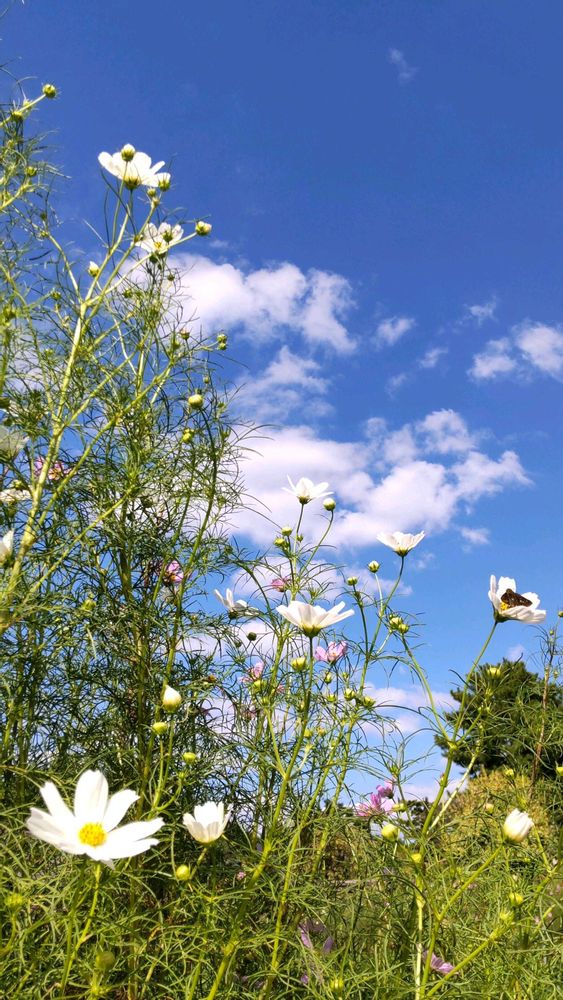 青空⛅️💙🩵綺麗に咲いてますね🩷🩷🩷🤍🤍🤍