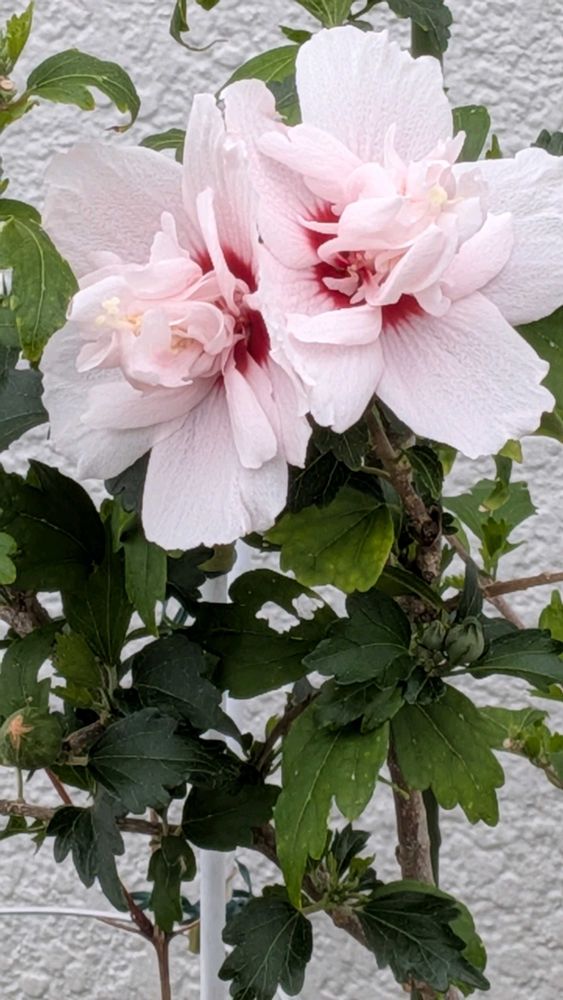 フヨウ(芙蓉)と八重咲きムクゲとコムラサキ(小紫)です。