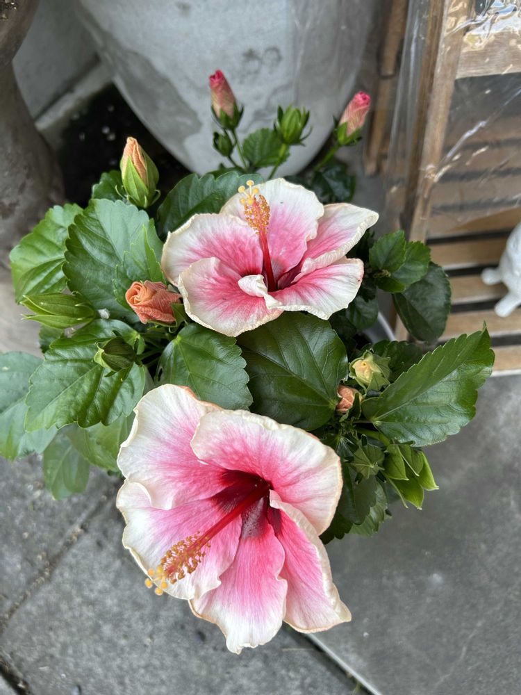 ハイビスカス🌺𓈒𓏸が咲き遅れちゃいけないと一斉に咲き……