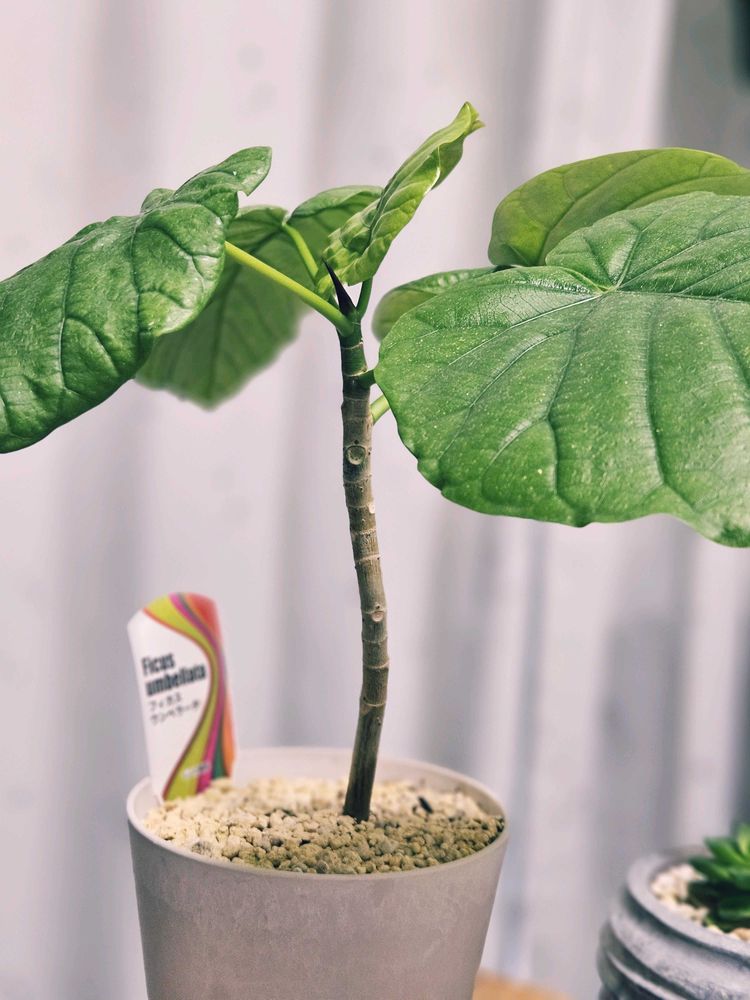 ウンベラータお迎えしたんですね~!うちの子もまだそんに大きくないですよ。葉っぱの形も可愛いし、幹を曲げたりしてお洒落にするのもアリだから楽しみですね~💕