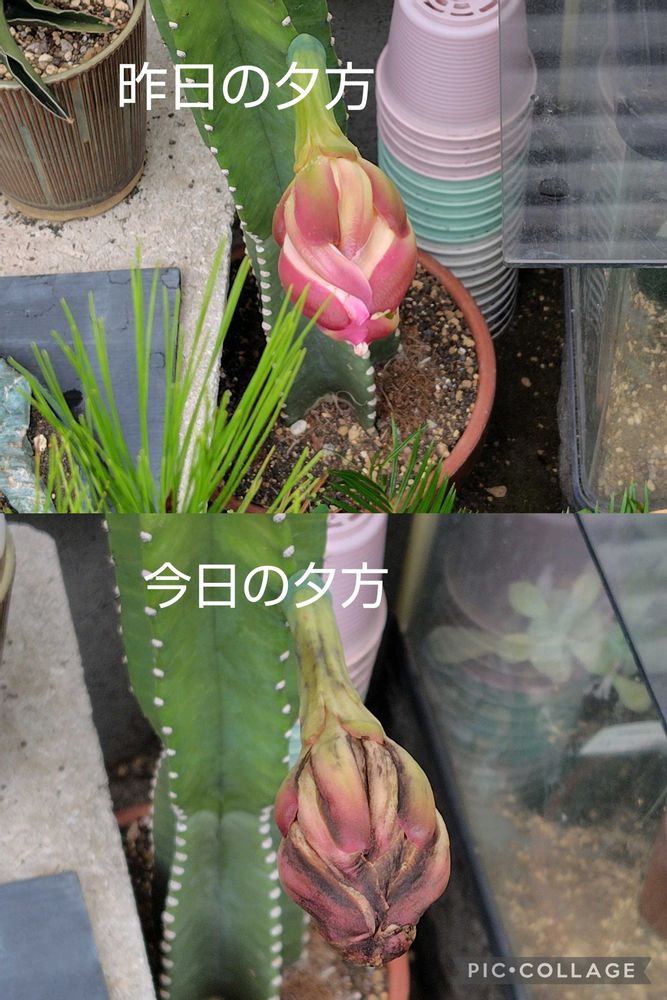 咲いた後でした 今日は 完全にしぼんでいましたよ😂 この次は 花の咲く頃がだいたいわかったので 見れるかもしれないけど 一晩 起きてるって事は無理ですね😂 クジャクサボテンのような 綺麗な花で 大輪 だったら 見る価値はあるけど ただ大きいだけの花みたいだから🤭
