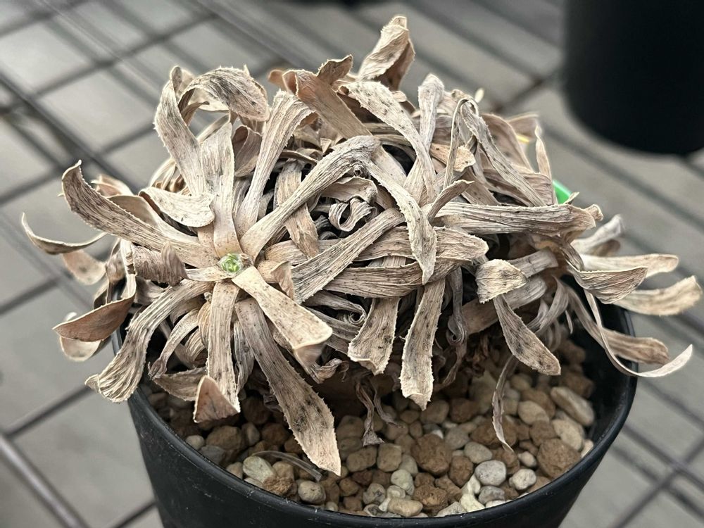 2鉢あるレトロルサのうち、1鉢が先に目覚めました☀️ 今年は株周辺の温度を下げるためにほぼ毎日霧吹きしてたので、古い葉が斑点状にカビてますが気にしない!