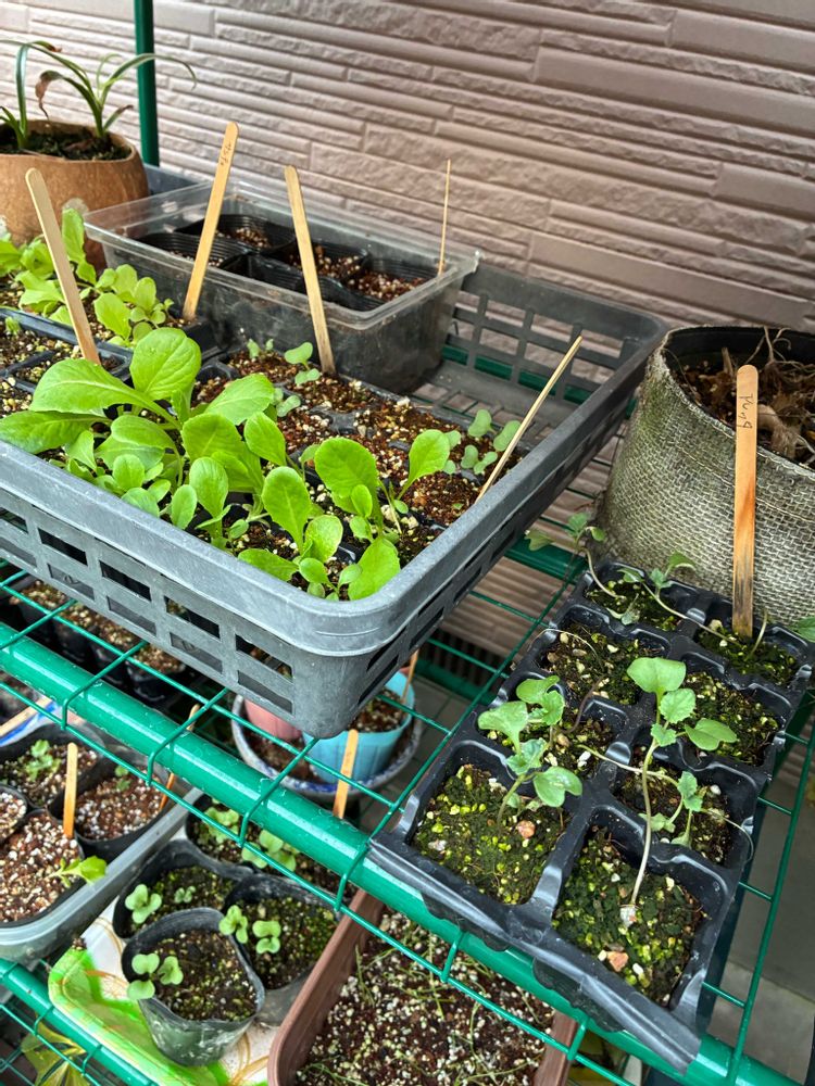 今年は大きいブロッコリーの種が無かったので、10株200円の処分品を救出して定植しました。サラダ菜と混植して、防虫ネットしてます。