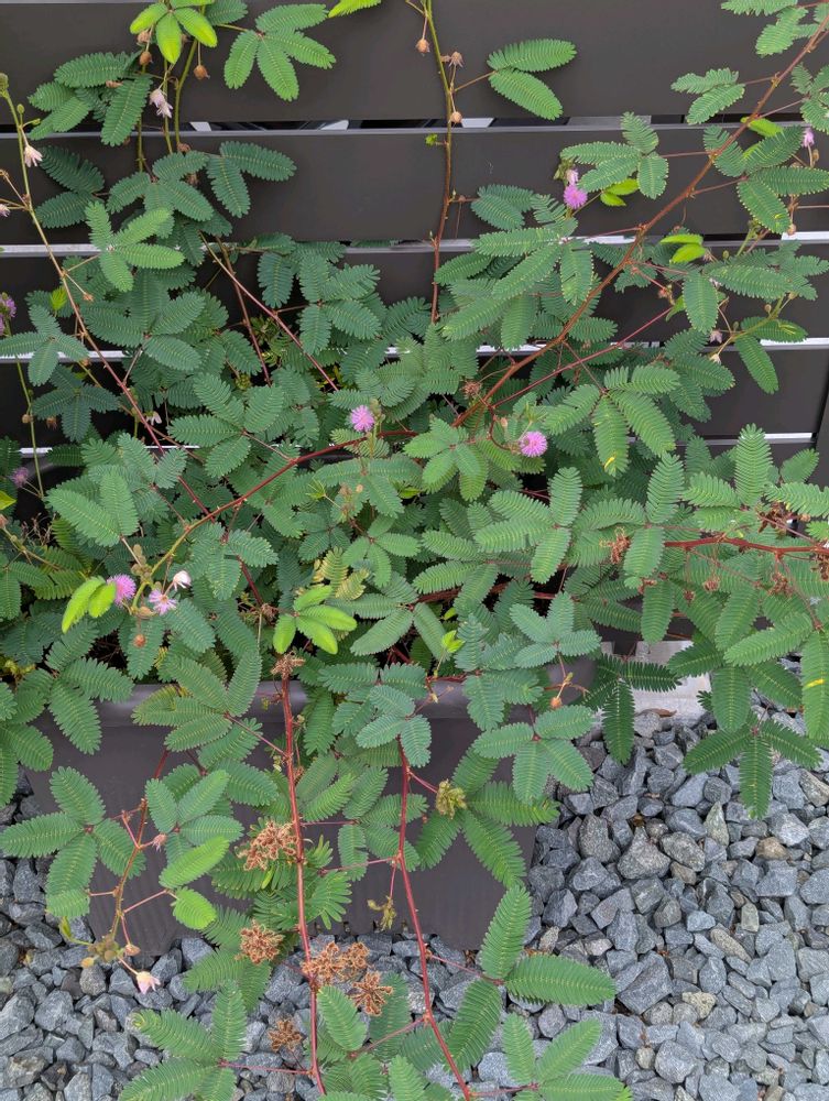 オジギソウを寄せ植えしたら他の花は枯れてしまいました。オジギソウって繁殖力凄いですね。