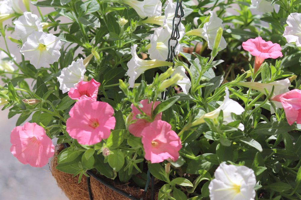 PWスーパーチュニアビスタスノー&シルキーピンクの挿し芽ハンギング🧺