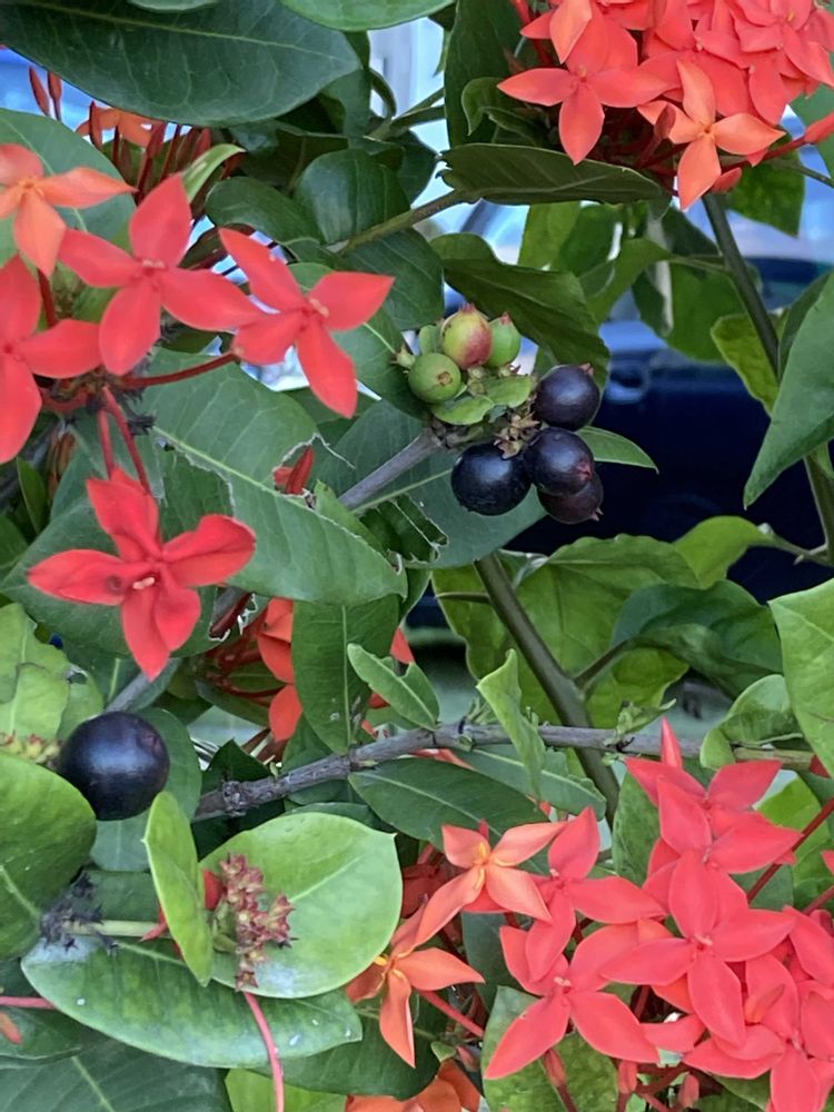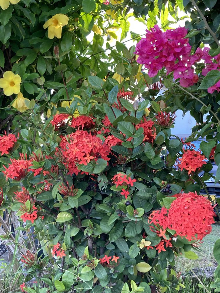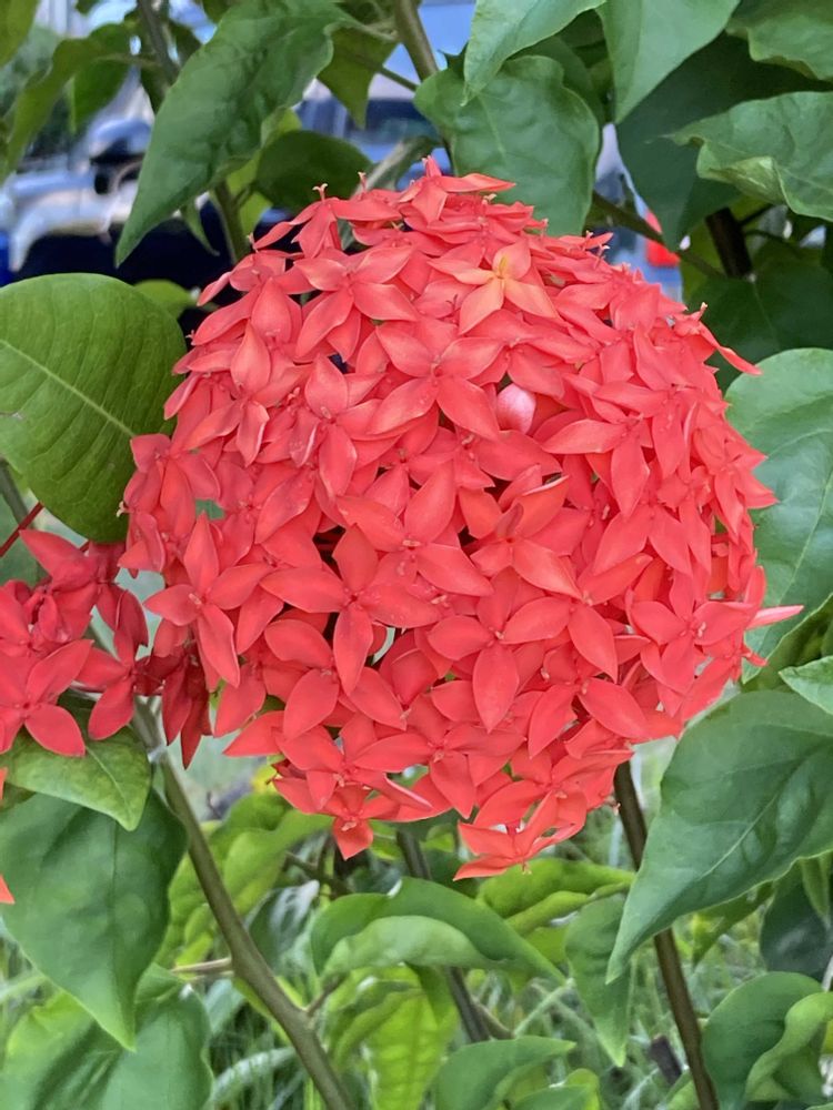 我が家の今年のサンダンカ🔴は、まるまるとした大き目な花の集合体になってます!(^。^)🎶