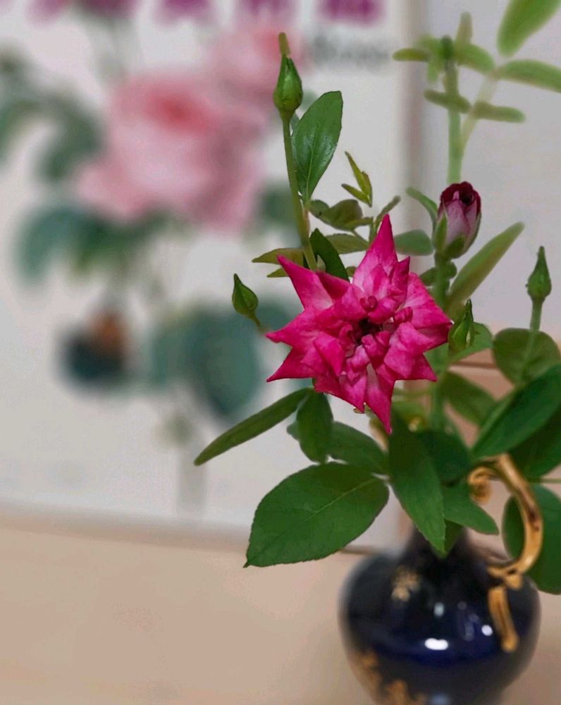 このバラは茎がしなやかなのですが上を向いて咲いてくれるので一輪挿しと相性が良いです🩷