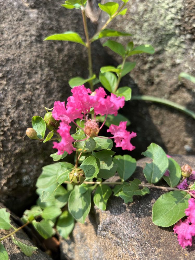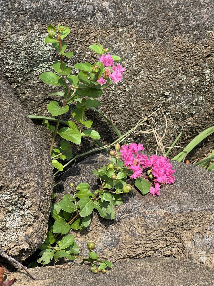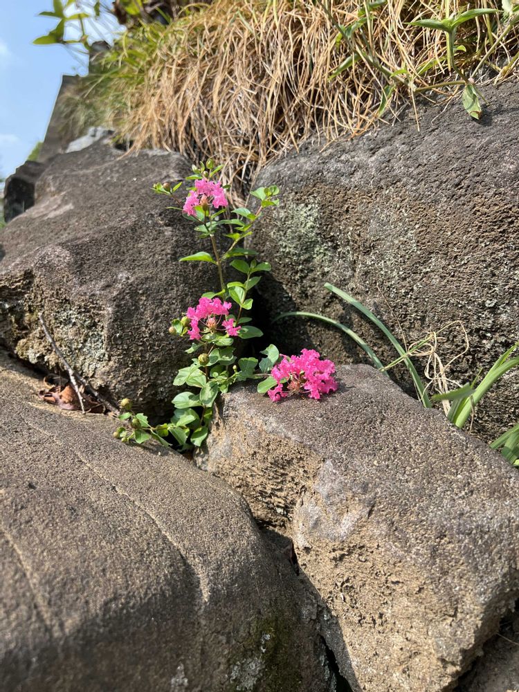 石積みの間からド根性サルスベリ