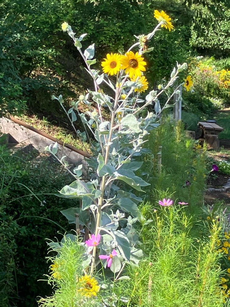 ⑤銀葉ヒマワリ🌻とコスモス🌸