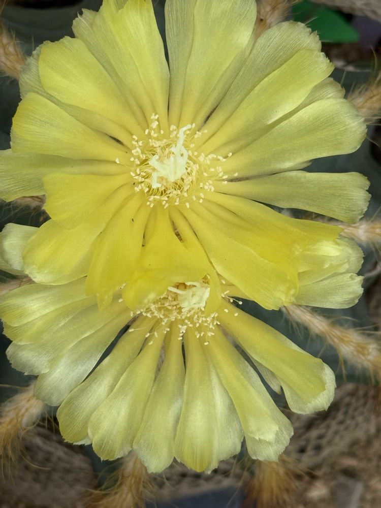 様 ご覧いただきありがとうです🙇🏻 淡い黄色のサボテン2輪 見頃でしたー🎶🎶