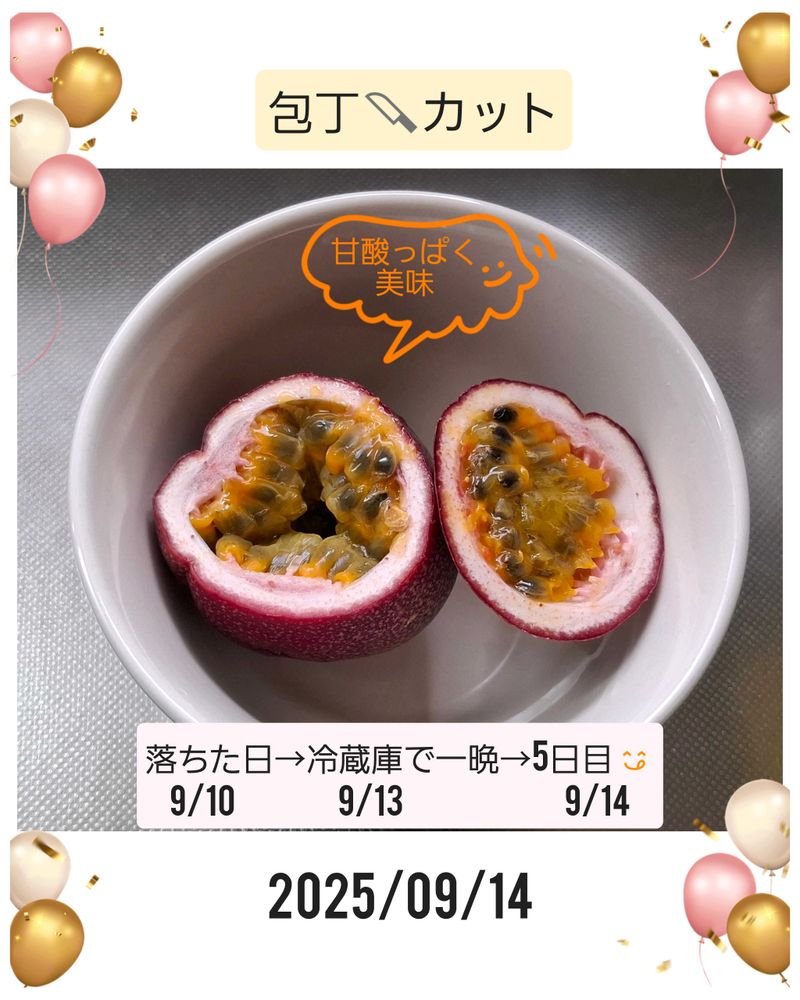 パッションフルーツ🥭、食べ頃を迎えたんだね。