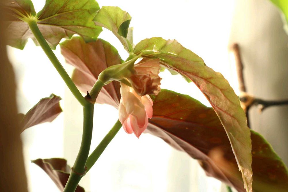 家に来た時も花芽は付いていたのですが環境が変わったので期待はして無かったけど…ベコニアの花は新芽の下に付くんですね❗