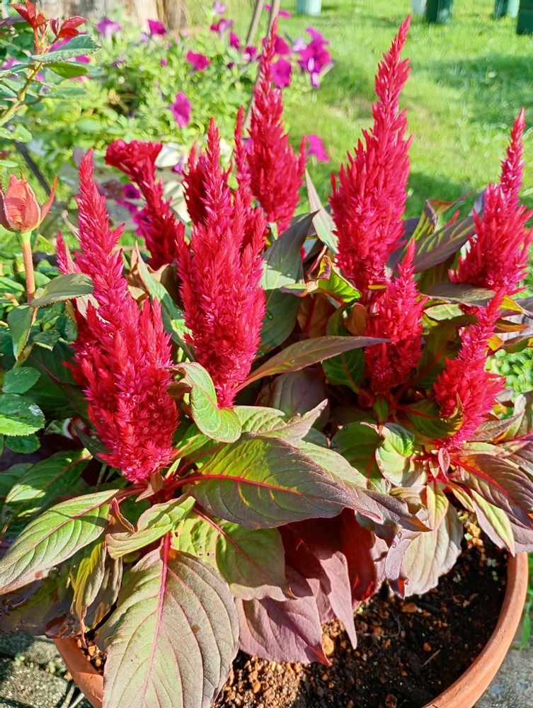 セロシアは鉢植えで3株と地植えで3株だよ😻