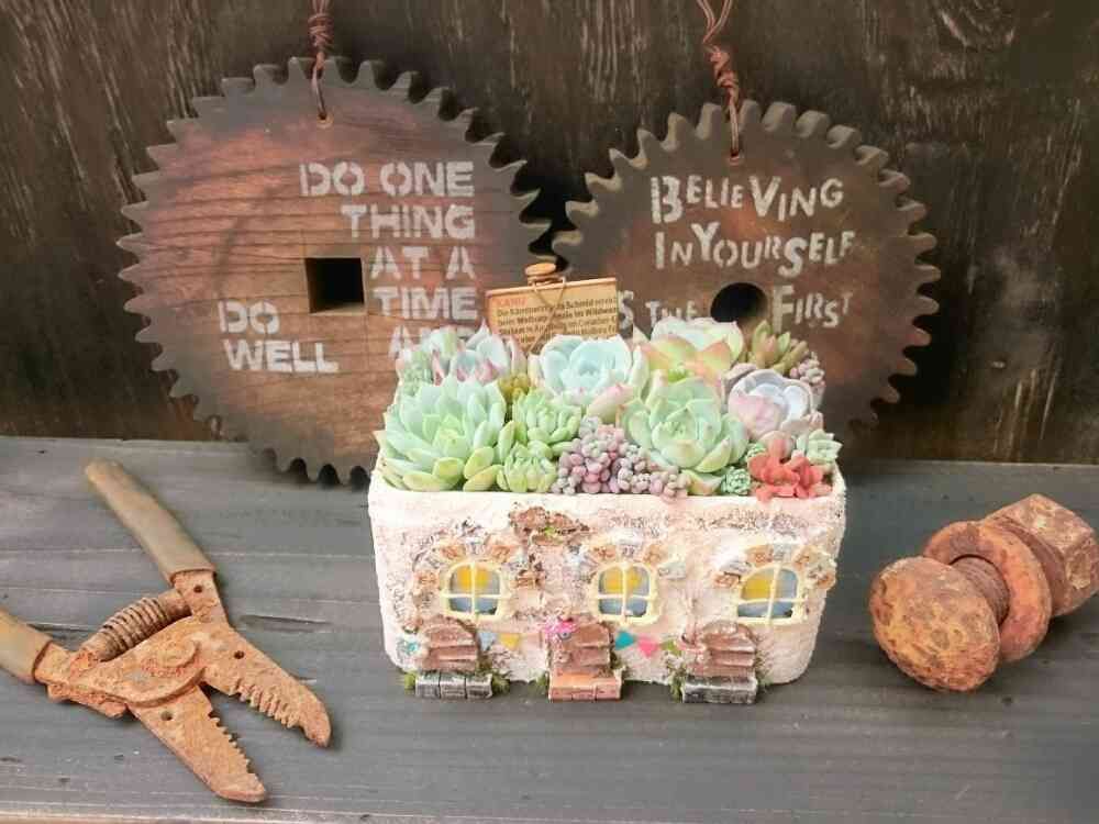 パステル調の長屋にパステル調の多肉さん(*´▽`*)🌼