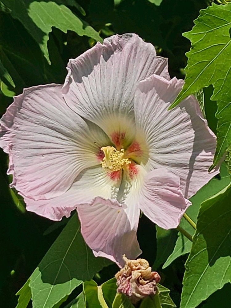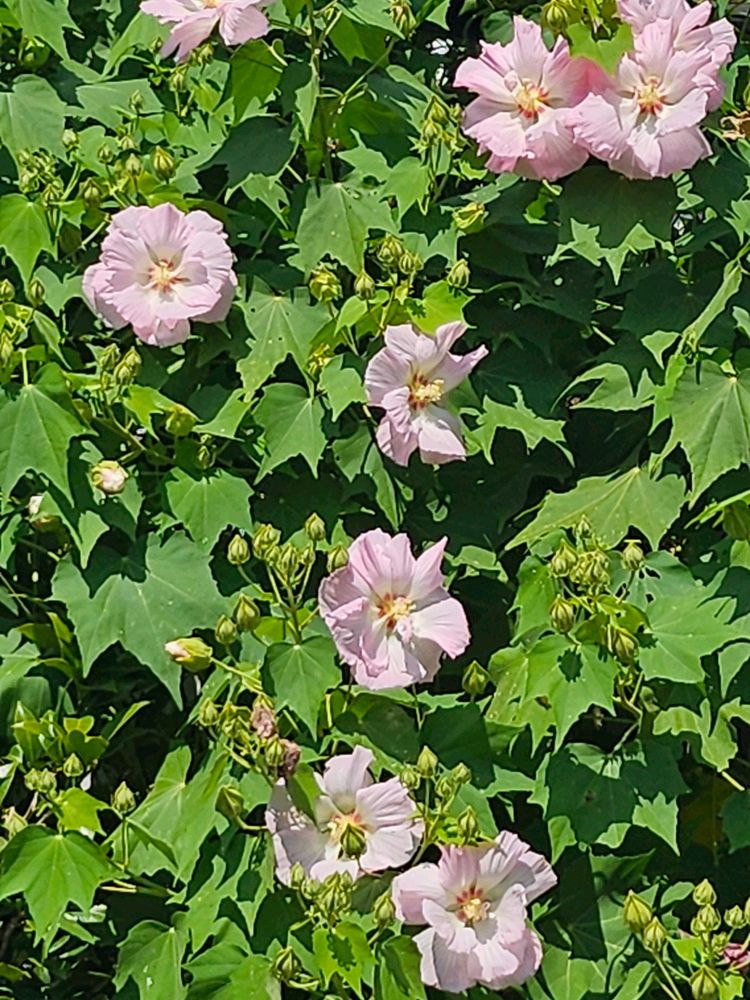 おはようございます。酔芙蓉 お昼頃ピンクになりかけてました。初めて見ました🩷