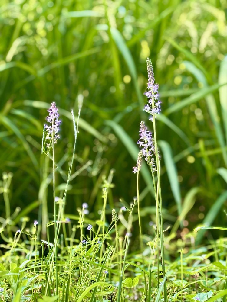 ツルボとウリクサのコラボがあぜ道でキラキラ✨