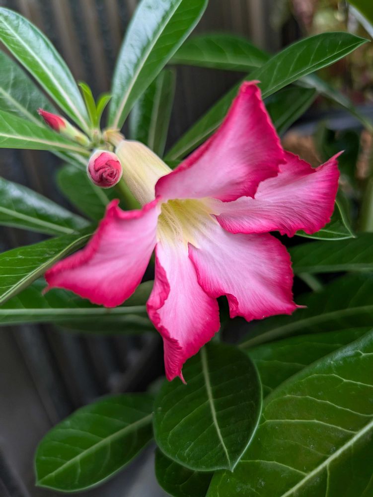 植物としての特徴が どっしりとした太い株元とは異なり、枝先に咲く鮮やかな花がまるでバラのように美しいことから「砂漠のバラ」と名付けられたみたいです🤭