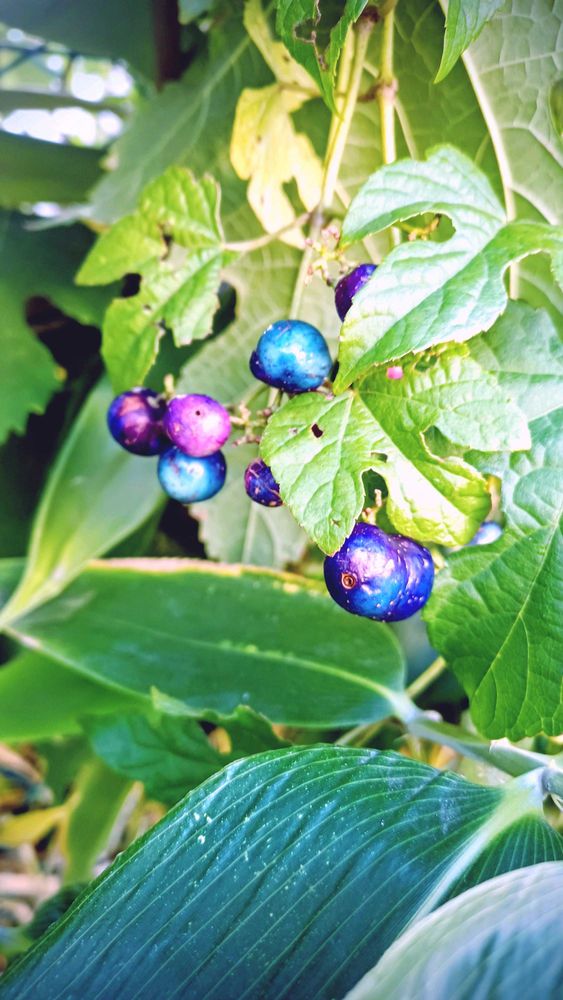 ふと、野葡萄が宝石のように光っているのが見えた。