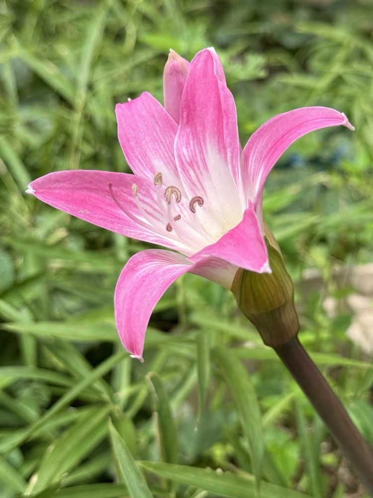 先日ネリネだと思って投稿した蕾、咲いたらベラドンナリリーだった😳
