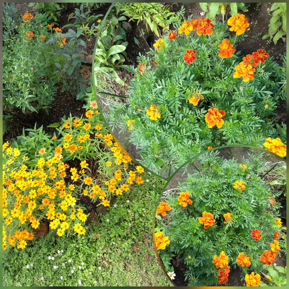 3枚め…夏のビタミンカラーの花、マリーゴールドとジニアもまだ頑張って咲いています🙌💓