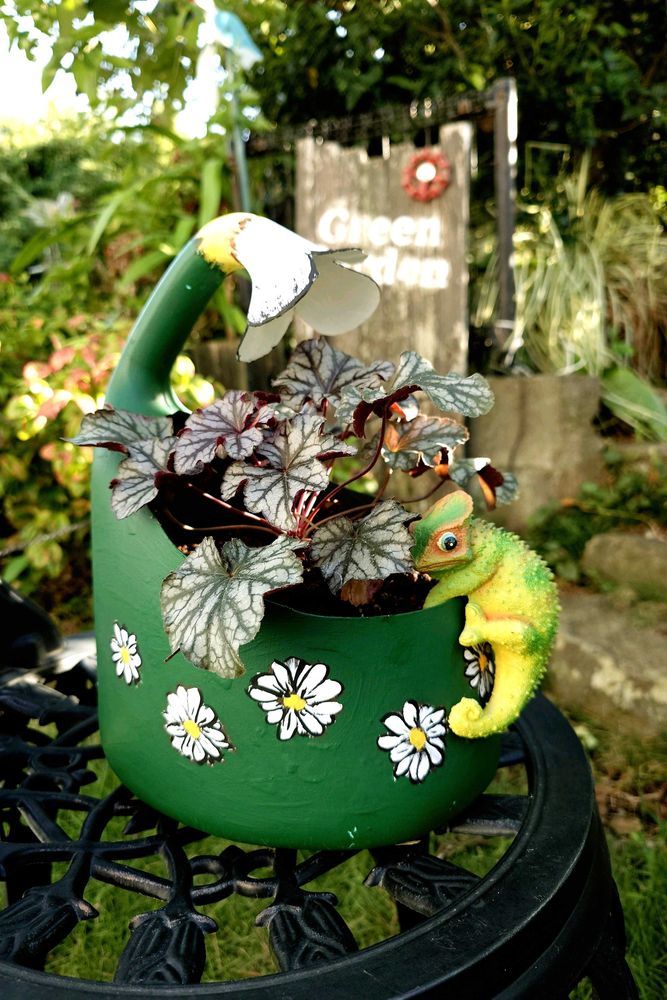 カメレオンさん仕様のリメ鉢作成🌼お花柄だから
