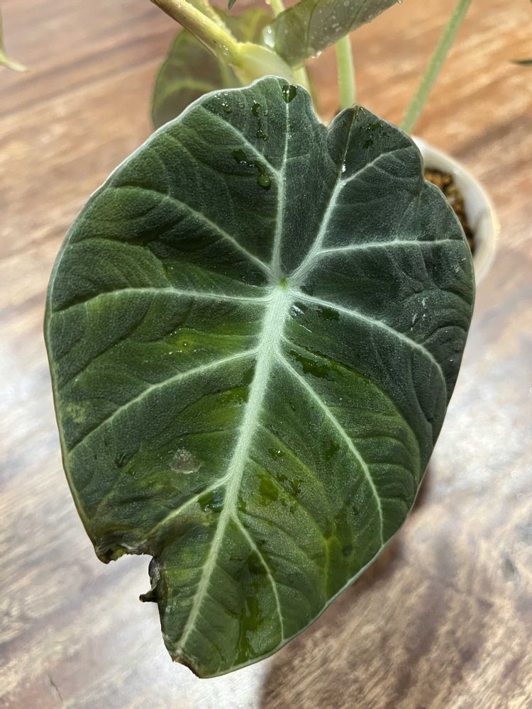 別件の買い物で寄ったホームセンターで目に入ったアロカシアブラックベルベットが一点物、絶対に買わないと思ったがマットな色合いに惹かれて結局購入…
