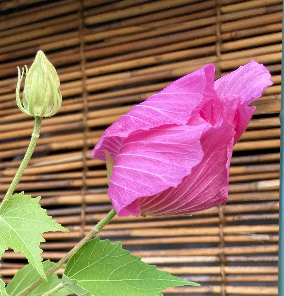 今日の出勤前と仕事帰りに出会えた『フヨウ(芙蓉)』の花です𓂃𓂂ꕤ*.゚一日花の芙蓉の色が濃いピンク色になっていました。:°ஐ..♡*