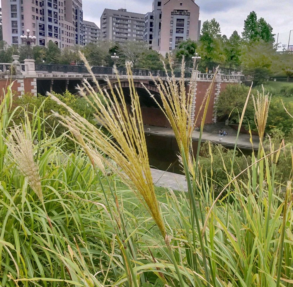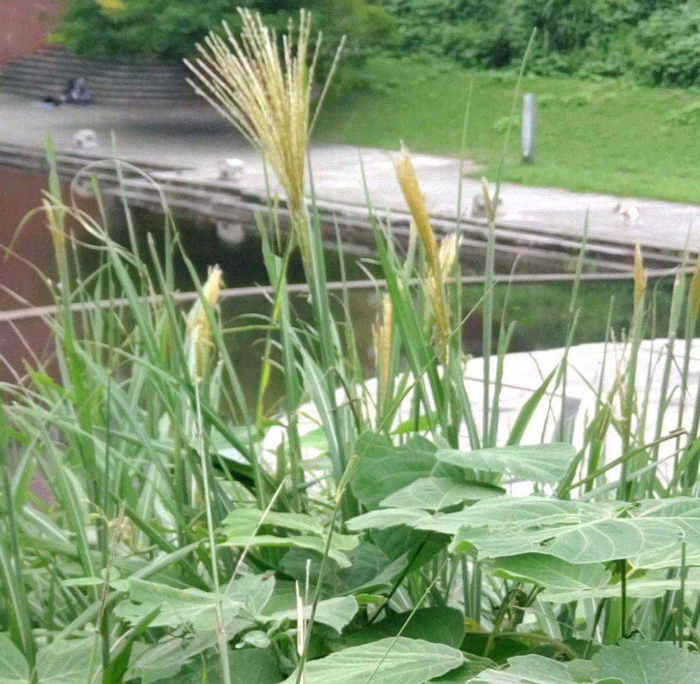 少し下った池の畔のススキは少し日陰になるので、、出始めたばかりの青々した穂が柔らかそうでした🌱
