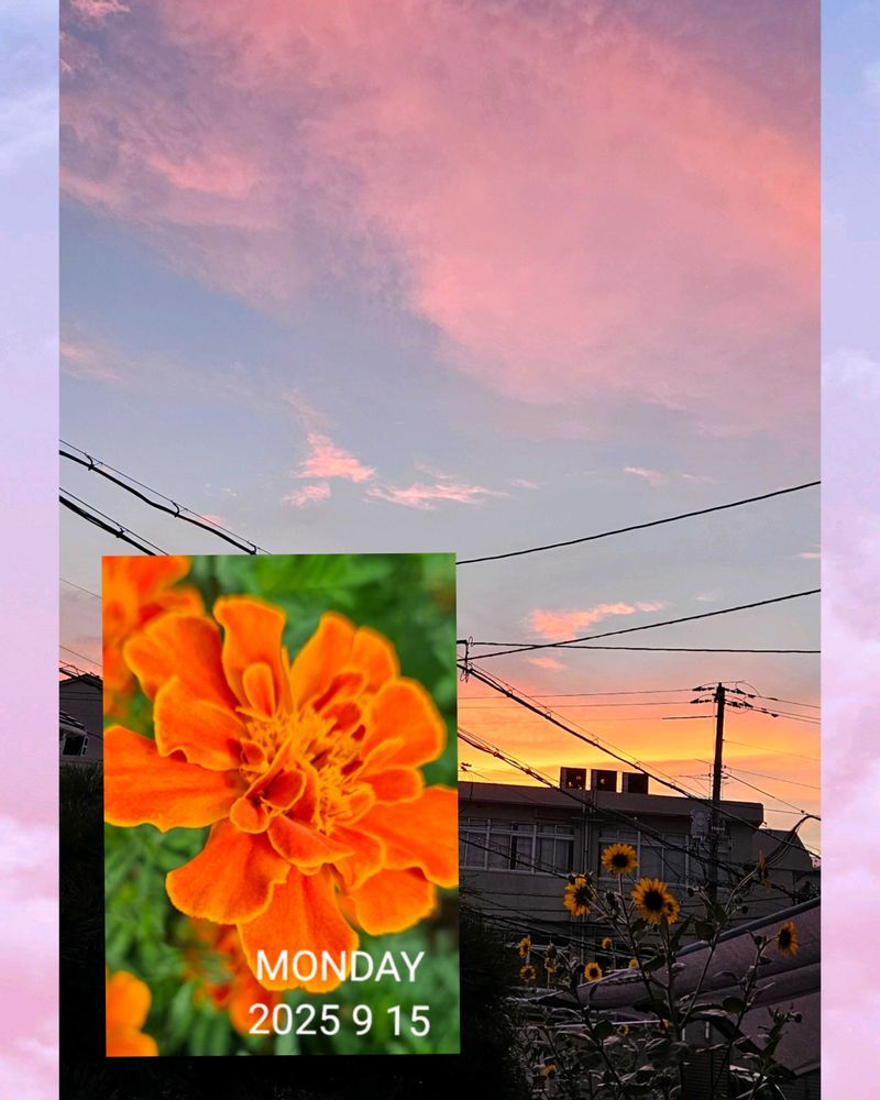 夕焼けとマリーゴールド
