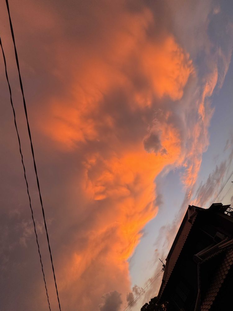 夕飯食べてたらやけに外がオレンジ色??と思って外へ出たら