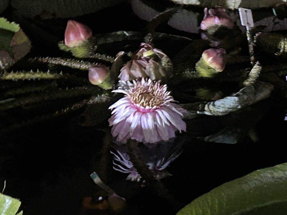 神代植物園夜間開園行ってきました♪🤭パラグ女王🌸久しぶりのフル開花を見れました‼️昼間の時点で白花一つとピンク花3つは分かってましたが、ど蕾だった一つが咲くとは予想外(笑)😅💦まだまだ甘いです💦笑。外池に着くとすでに白花の甘い香りがして懐かしい感じでした🤭♪ヤッパ‼️Victoria系(パラグアイオニバス、オオオニバス、ロングウッドオニバスね🤭)は夜が似合ってますね✨🤭♪