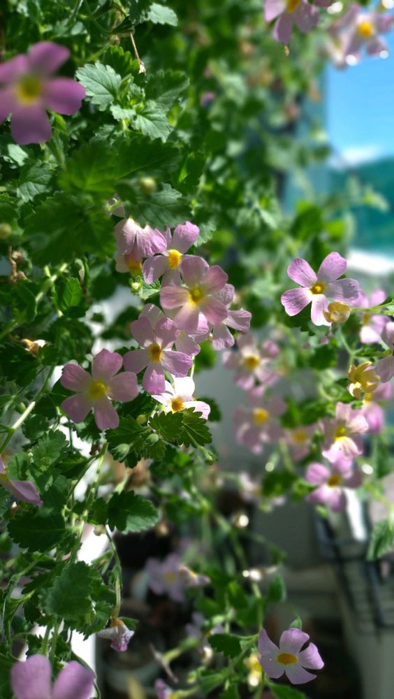 ベランダの花さん達は暑さのせいか夏バテ気味…そんな中、ジャメスブリテニアやっとチラチラお花を咲かせてくれるようになりました!暑いのに頼もしい!