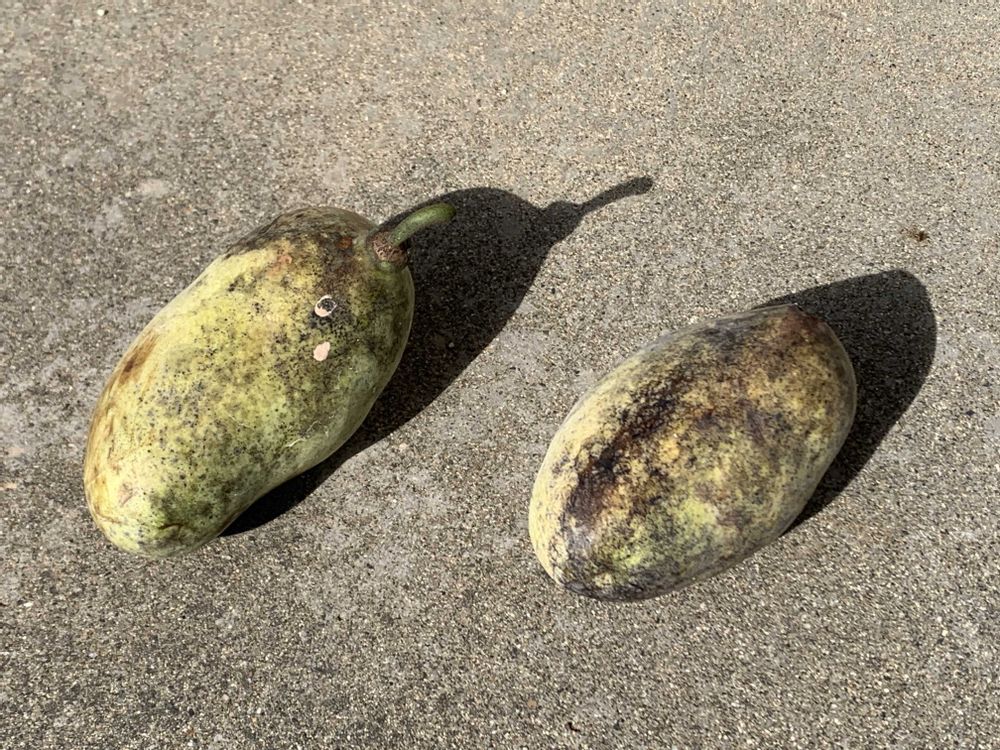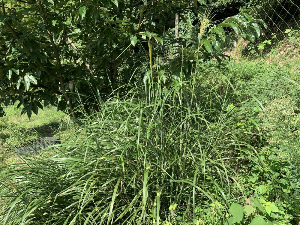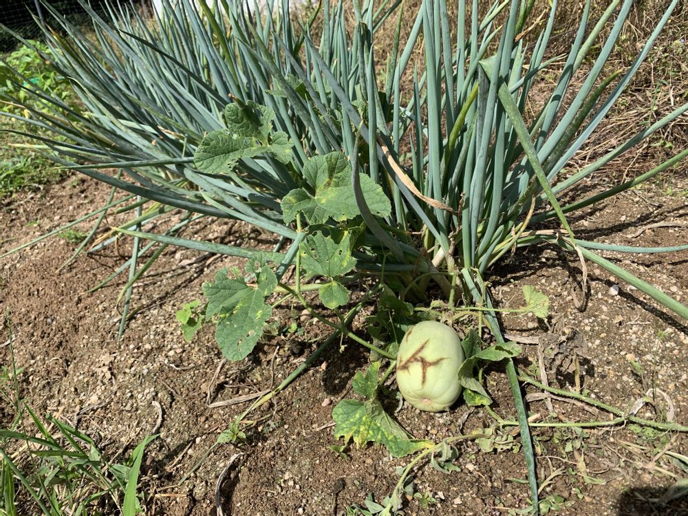 タカノハススキに穂が出てきました、そろそろ秋ですかね?😀畑の草刈りをしたのを片付けてました、去年栽培してた網干メロンのこぼれ種から実ができました😀ネギのさつき姫がだいぶ分けつしてるけど、畝をあけたいから、植え替えしたいなぁ😅と、ポポーが落下してました😀落下するのが完熟のサインです😀今日のカールくん🐕😊