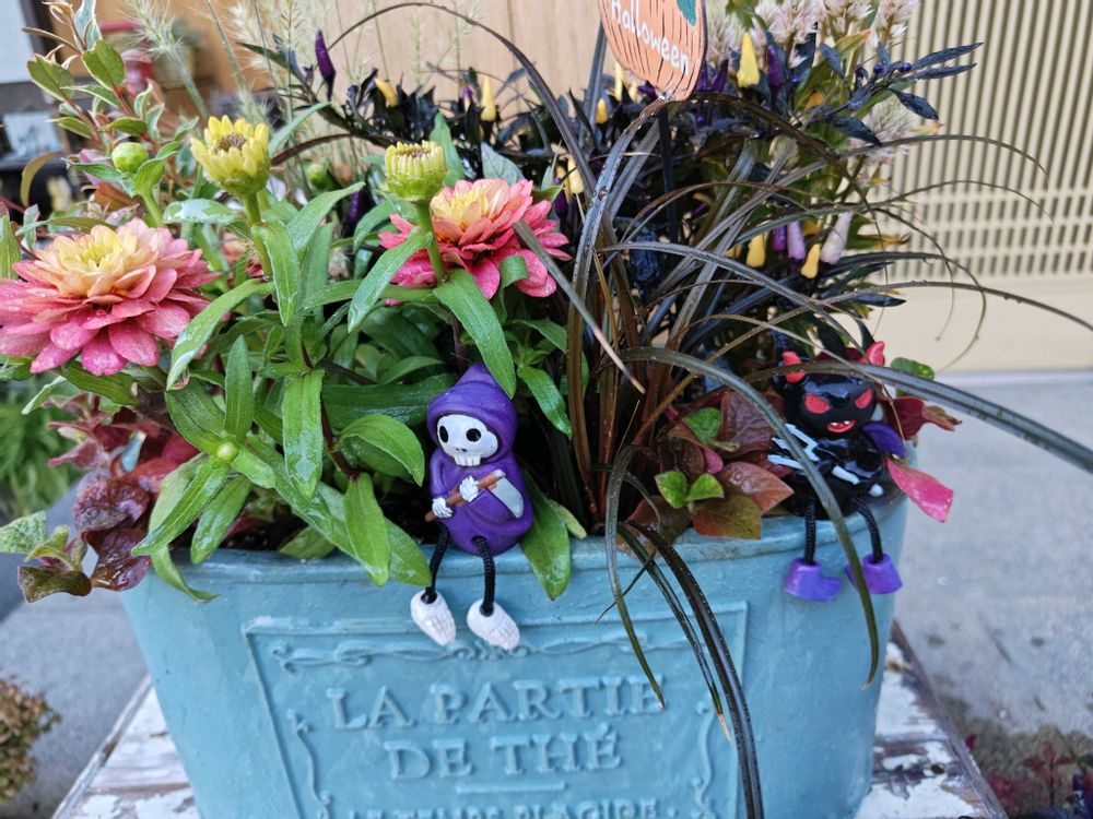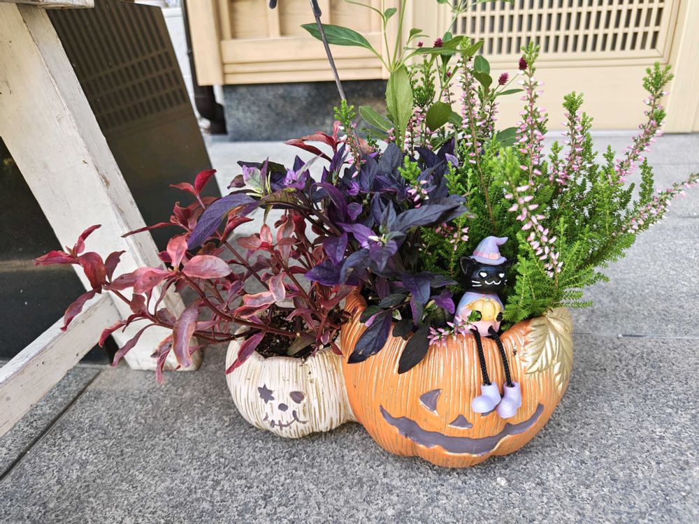 ハロウィンをイメージして植物を選び今日、久しぶりに寄せ植え
