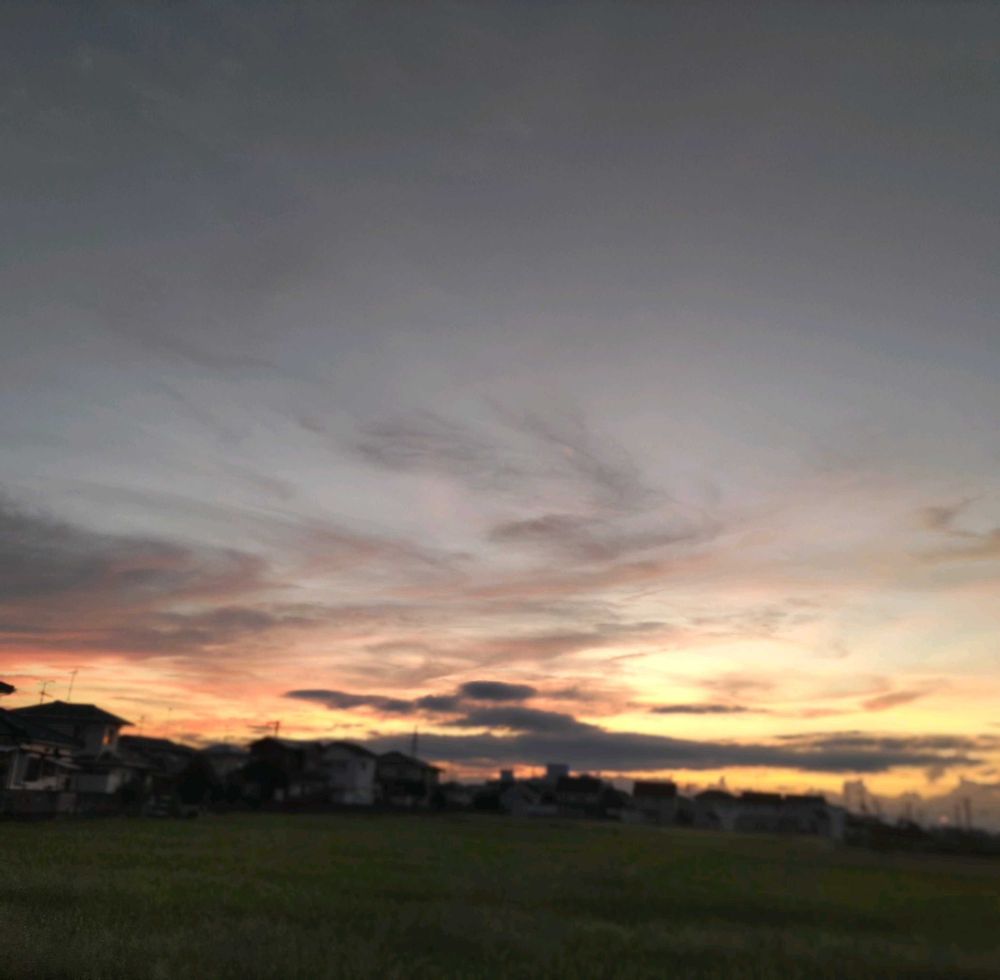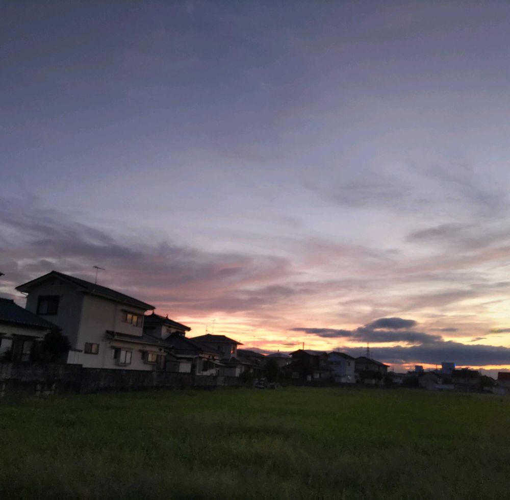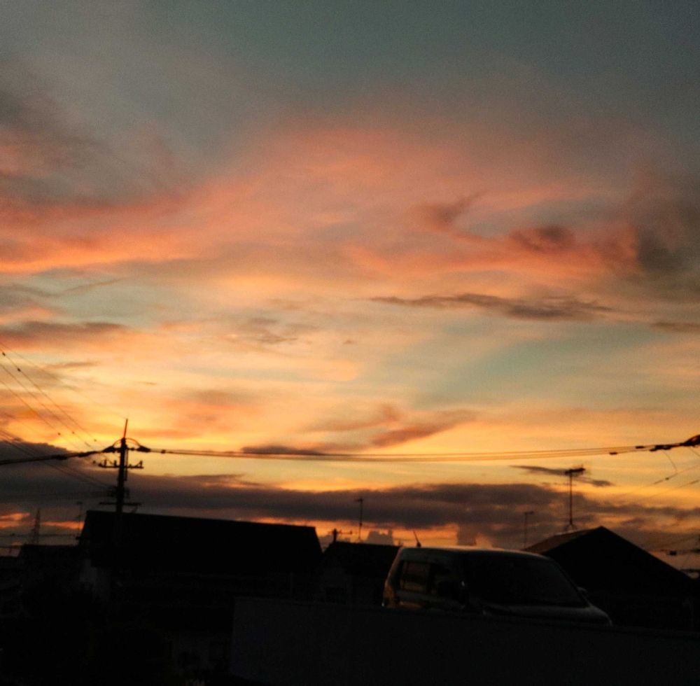 午前中晴れてたのに、午後から曇って来て雨が少し降りましたが、夕食頃18時32分頃には夕陽が綺麗に見えて近所のアパートの駐車場から写させて貰いました。