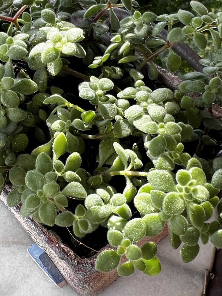 丸い葉っぱで表面に細かい毛があって、ふわふわ感が可愛い🩷