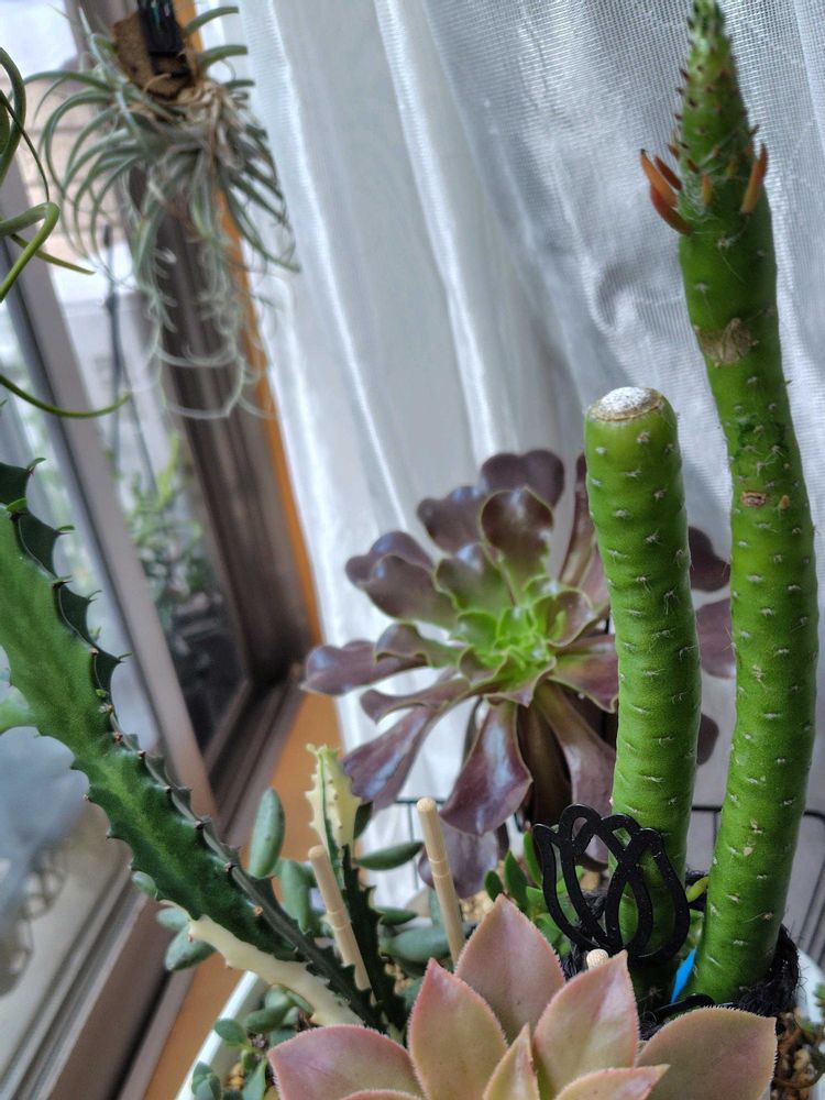 ホワイトゴースト(8/8📷)と、姫将軍を寄せました。ノッポは、植え替えるとグラつくので、大変💦姫将軍側面に穴が空いていたので、植え替え時に、✂️してみましたが虫は発見できず。