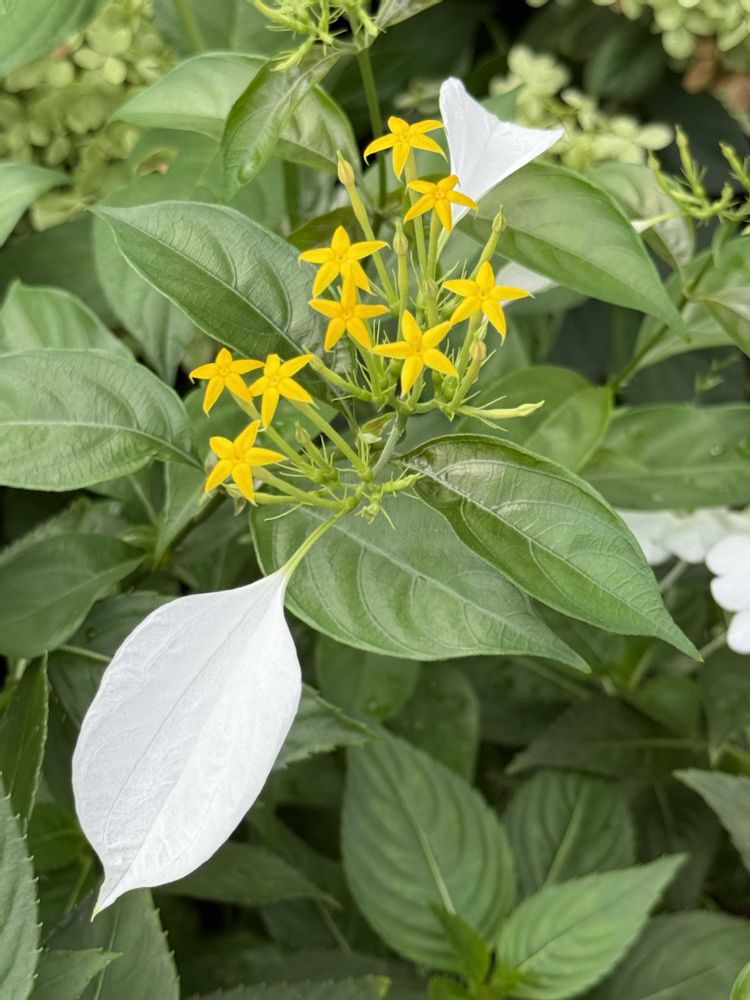 一部白い葉と星型の黄色い花が可愛いコンロンカ