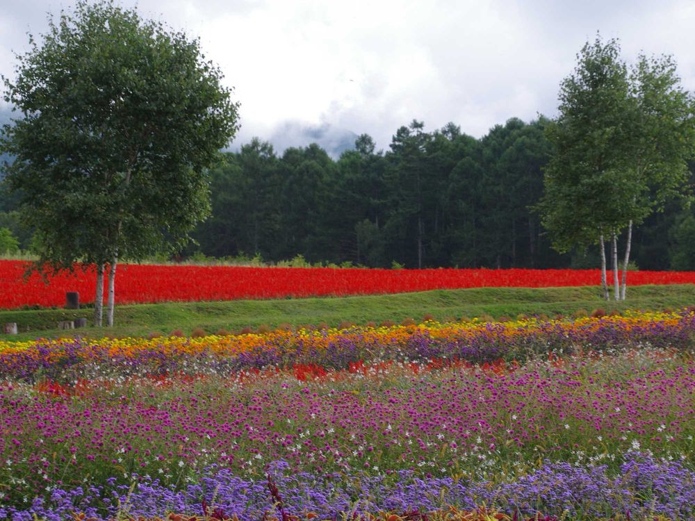 天気は曇り空で、サルビアの背景に見えるはずの八ヶ岳連峰を見られませんでしたが、花畑の花達はまだかなり咲いていました🌼🌸🌺🌼