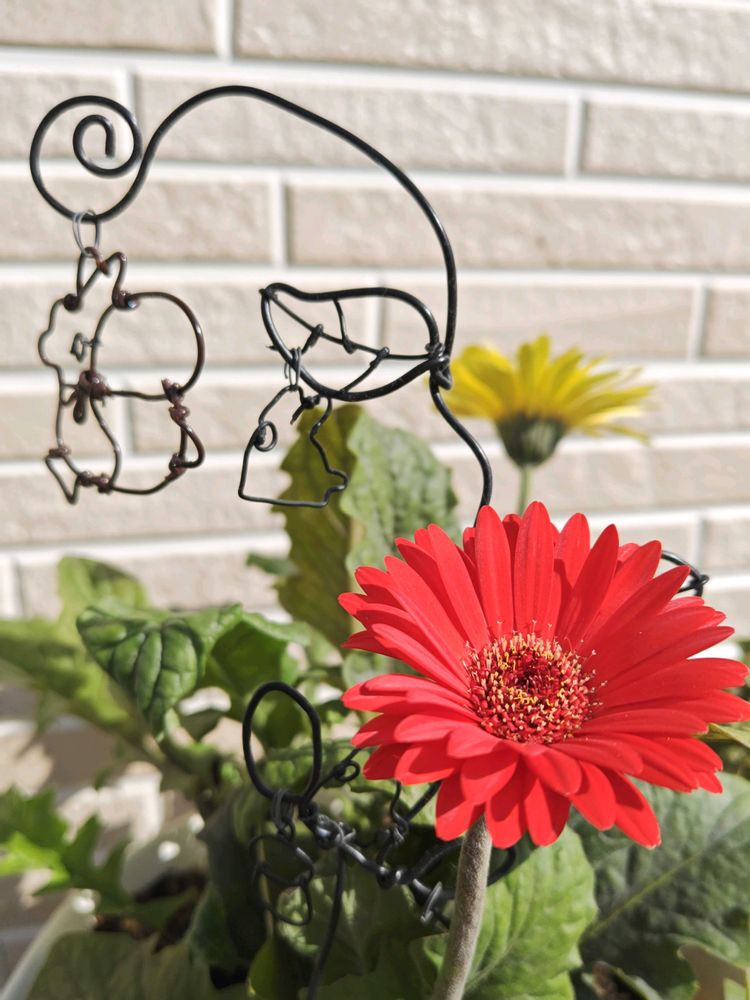 赤いガーベラと手作りトトロのワイヤーとっても素敵😍