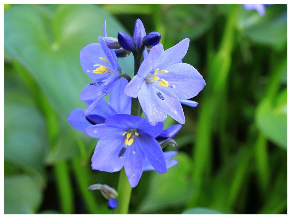 盛夏の水辺に清々しい青いお花が咲いていますね♪