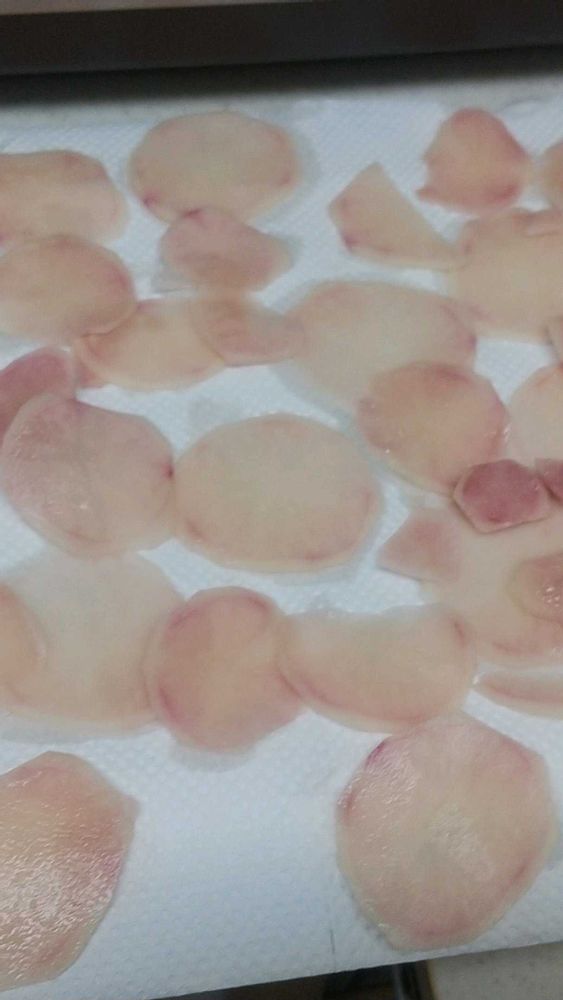 ④⑤の写真は高温で揚げたり、油切りが悪く失敗作の方。⑤はのり塩。