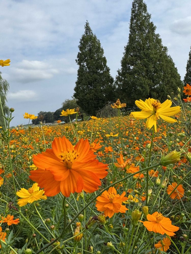 コスモスが咲くと混みますが、キバナコスモスのときはそれほど人が多くないので、ゆったりしていますよ💕😊