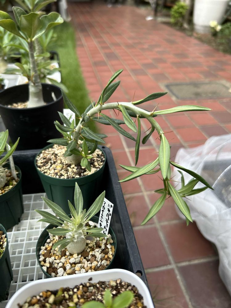 パキポディウムでまとめているのだけど、ビスピノーサムだけはすぐ水切れ、見かねて時々日陰に移動させていたら徒長、どうなりたいのか知りたい