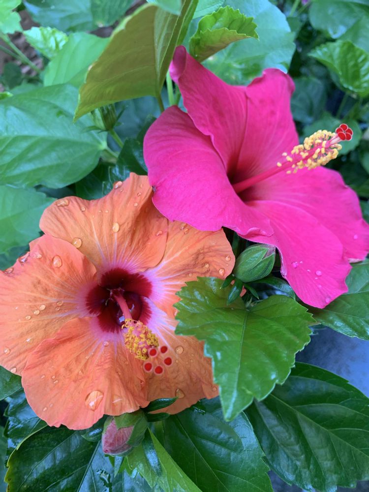 わぁ〜❣️ハイビスカス🩷🧡2色咲いてる〜😃💕