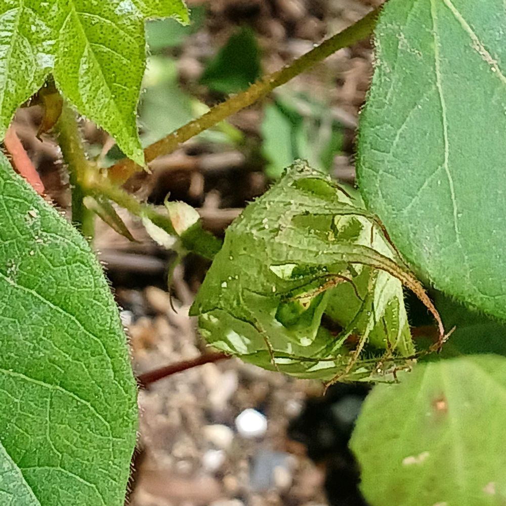 今畑見てたらオクラの葉にも沢山巻き巻き虫がいて葉をカットして来ました✂️