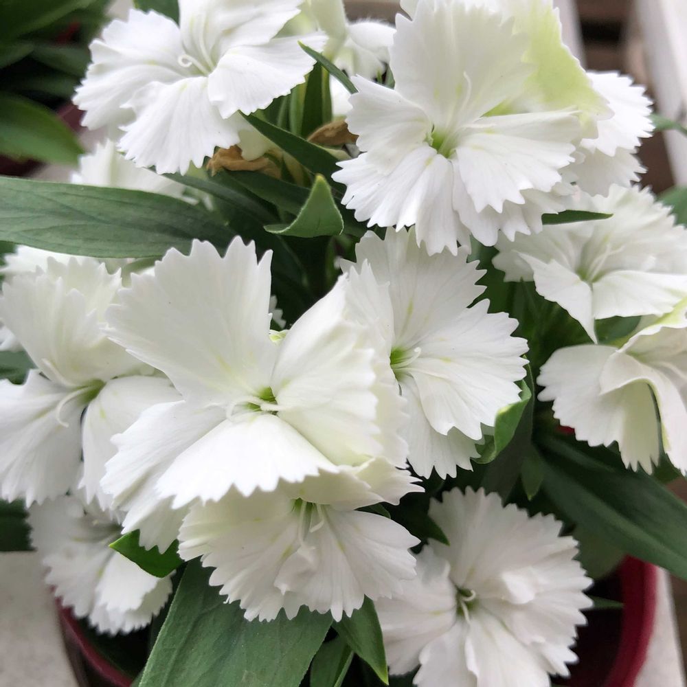 真っ白なナデシコとニチニチソウさん🤍🤍🤍