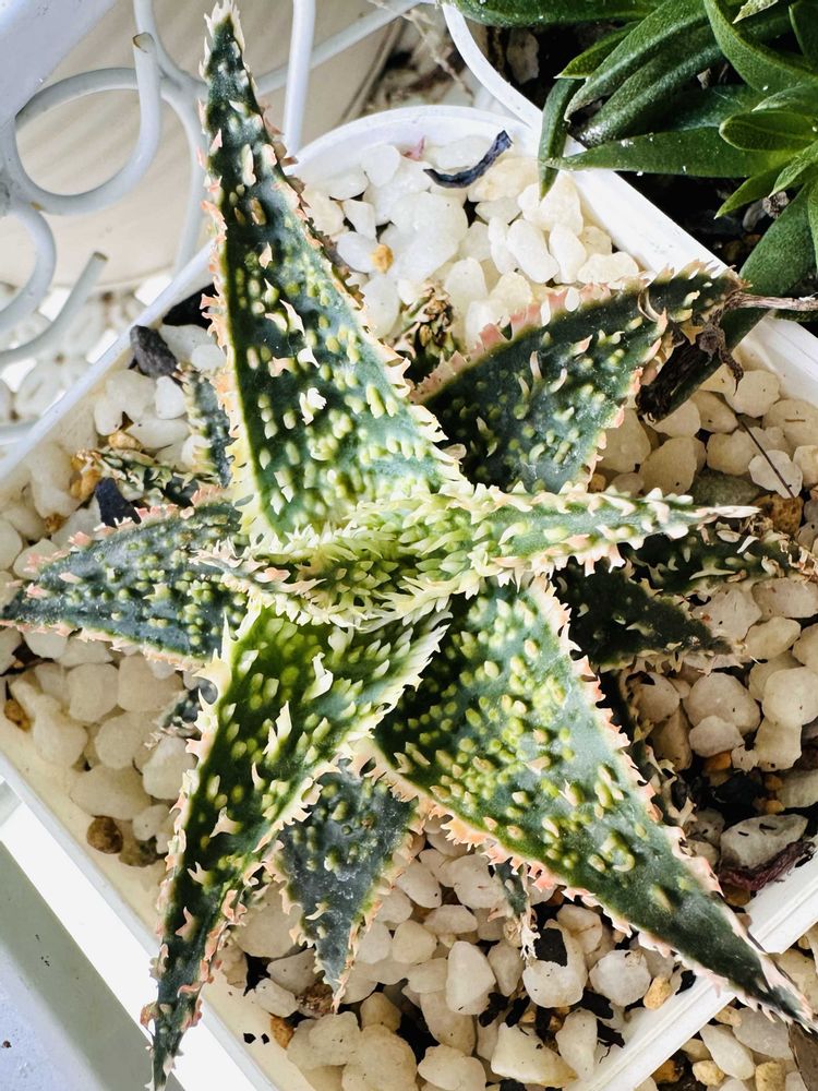アロエ ハイブリッド🌿少し大きくなりました。涼しくなったら肥料をあげたい〜早く涼しくなって〜😅✋
