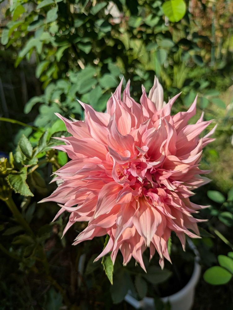 ダリア 天蓋 少し花が開きました。まだ右側は花びらが少ないです。